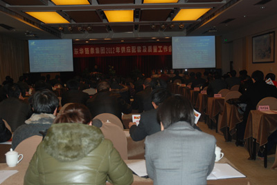 1月6日,東華集團在臨平賓館隆重召開2012年供應配套及質量工作會議??偣こ處熑~斌、董事長助理張世強、副總經理袁立華、廖杭州、張寶康、財務總監趙鵬飛等高層、各事業部部長、副部長及技術質量、采購人員與來自東華的100多位供應商代表齊聚一堂,共同商討供應鏈建設,提高外購外協件產品質量等合作事宜。