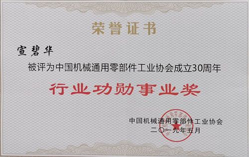 會上,中國機(jī)械通用零部件工業(yè)協(xié)會鏈傳動分會理事長,東華集團(tuán)董事長宣碧華獲中國機(jī)械通用零部件工業(yè)協(xié)會成立30周年“行業(yè)功勛事業(yè)獎”。
