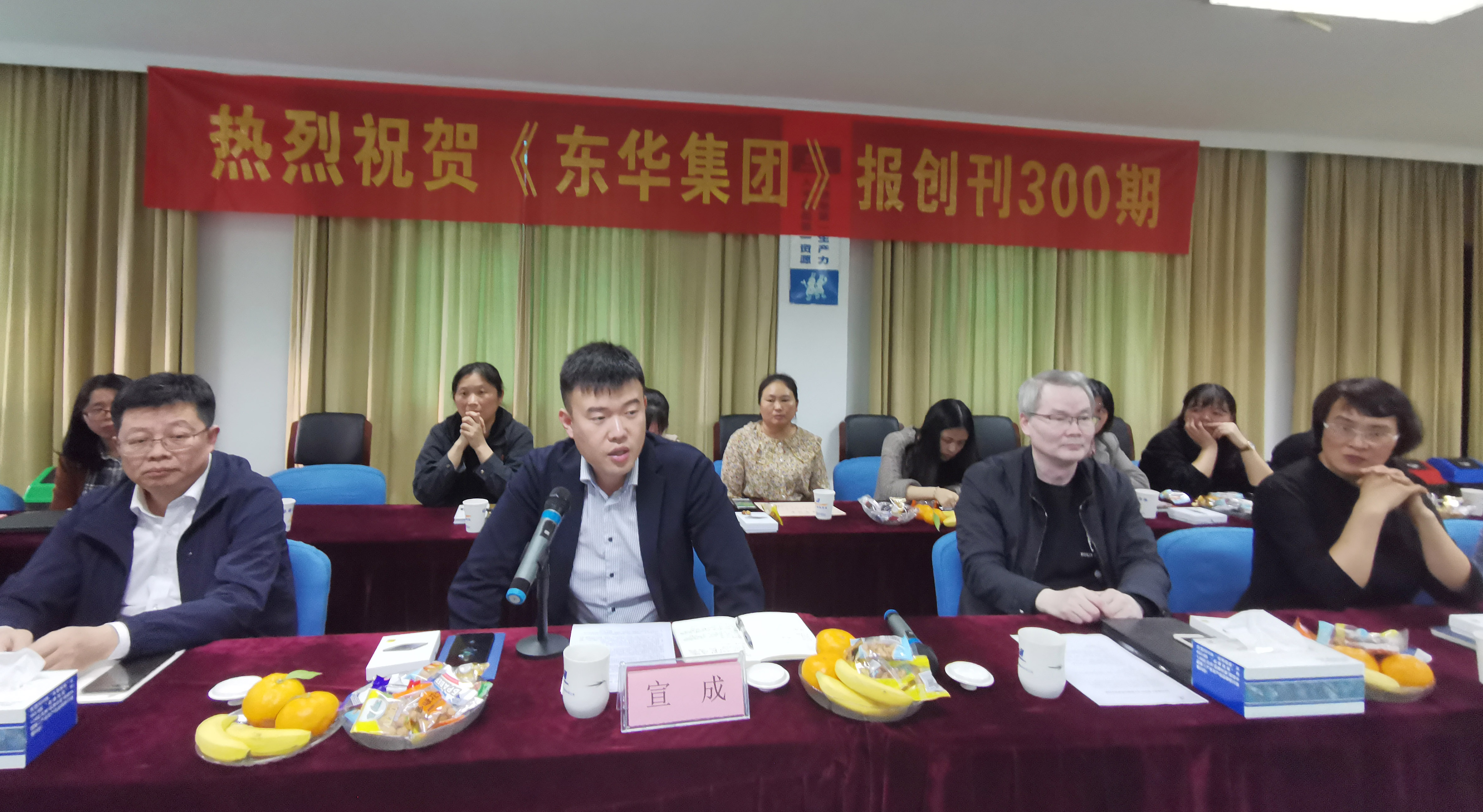 最后。副董事長宣成講話。他說,今天參加《東華集團(tuán)》報創(chuàng)刊300期座談會,首先代表公司感謝東華報編輯、通訊員每個月的付出,我們的報紙才更有生命力,能出版300期。