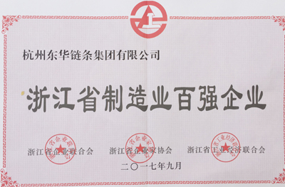東華鏈條集團再次榮登浙江省制造業百強榜單