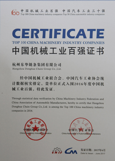 東華鏈條集團再次榮登中國機械工業百強榜