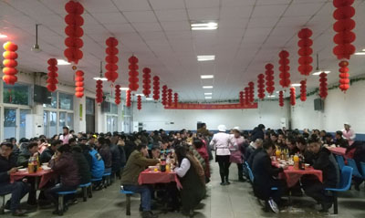 今年公司的年夜飯別有一番創意,除了在食堂內進行節日氣氛裝扮,掛起了大紅燈籠增加歡樂喜慶的氣氛外,食堂還對菜肴進行了創新,有可口的水果拼盤、干果、豐富的酒水、葷素搭配的美味菜肴,今年還特別準備了余杭當地名菜“紅燒羊肉”,最后一碗團圓水餃讓所有員工深深感受到東華大家庭的溫暖。年夜飯期間,集團公司各分工會主席代表公司分別到南區和新區食堂為員工送上新春問候和祝福,感謝他們一年來為企業的健康發展付出的努力。