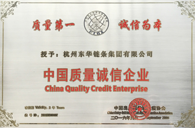 日前,中國檢驗(yàn)檢疫協(xié)會(huì)公布了2016年“中國質(zhì)量誠信企業(yè)”名單。東華鏈條集團(tuán)自2012年以來連續(xù)3屆被授予“中國質(zhì)量誠信企業(yè)”稱號(hào)。