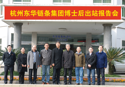 12月6日,杭州東華鏈條集團(tuán)召開博士后出站報(bào)告會。評審專家組由吉林大學(xué)博導(dǎo)/教授孟繁忠、馮增銘,浙江大學(xué)博士/教授楊將新,余杭區(qū)人社局劉慰科長,東華集團(tuán)總工程師葉斌,副總經(jīng)理袁立華共六位專家組成。