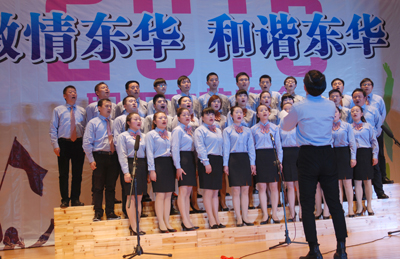 晚會主題為《激情東華,和諧東華》,這是一臺完全由員工自編自導自演的自娛自樂性質的晚會,節目豐富多彩,有獨唱、大合唱、舞蹈、相聲、小品、詩朗誦、戲劇表演等共23個節目,中間穿插了觀眾抽獎等環節。