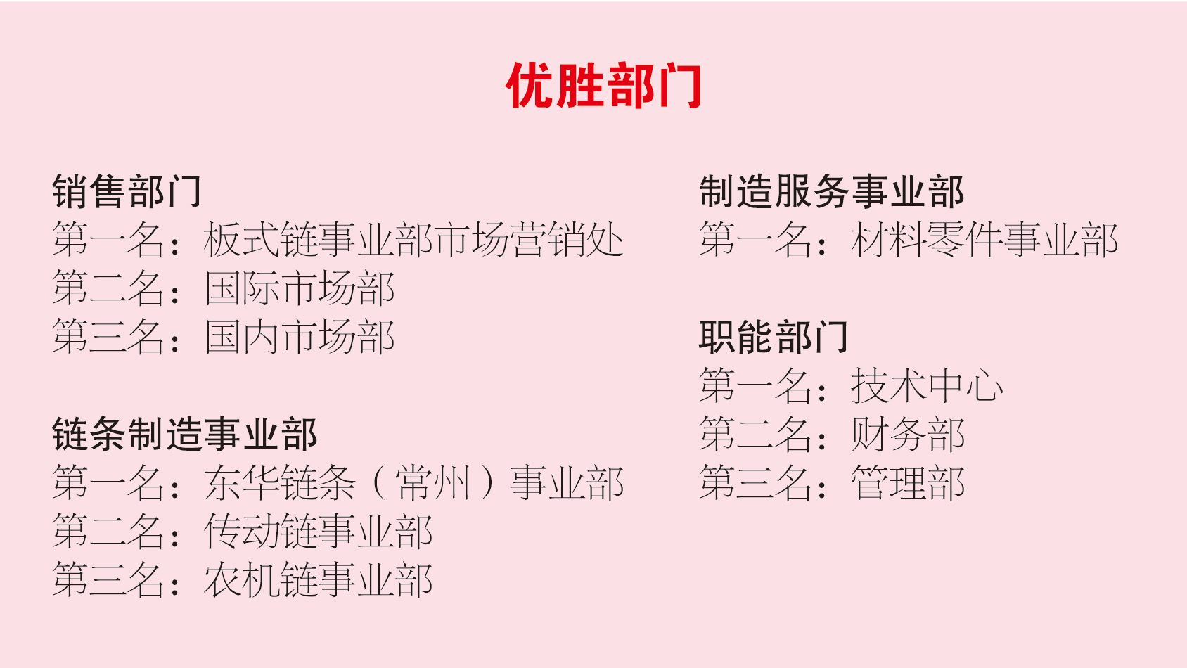 五項QC課題分別是東華鏈條及自強公司選送的《提升C2062HF84SS制面鏈的使用壽命》和《提升WH78鏈節的焊接合格率》憑借顯著的改進實效和創新性,雙雙榮獲一等獎;東華鏈條和盾牌公司選送的《解決CA550F5-F14附件斷裂問題》、《提升瓷磚窯爐12A-1鏈條耐磨性能》和《解決ME40F1-P-50輸送鏈扭曲頂板偏移問題》也表現優異,分別榮獲二等獎。